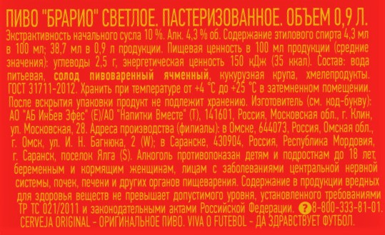 Brario - это светлый лагер с мягким вкусом и легкими фруктовыми нотами в аромате. Светлый лагер, обладающий насыщенным, но в то же время легким вкусом. Короткий срок созревания и деликатная пастеризация обеспечивают идеальный баланс между солодовыми оттенками и хмелевой горечью, придавая пиву удивительную питкость. Пиво входит в гастрономичную ремесленную серию. Оно прекрасно дополнит мясные блюда, особенно те, что приготовлены на гриле.