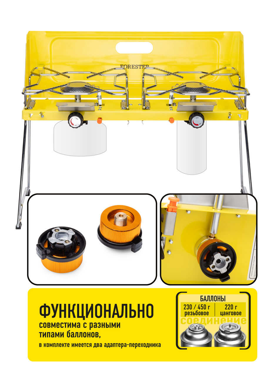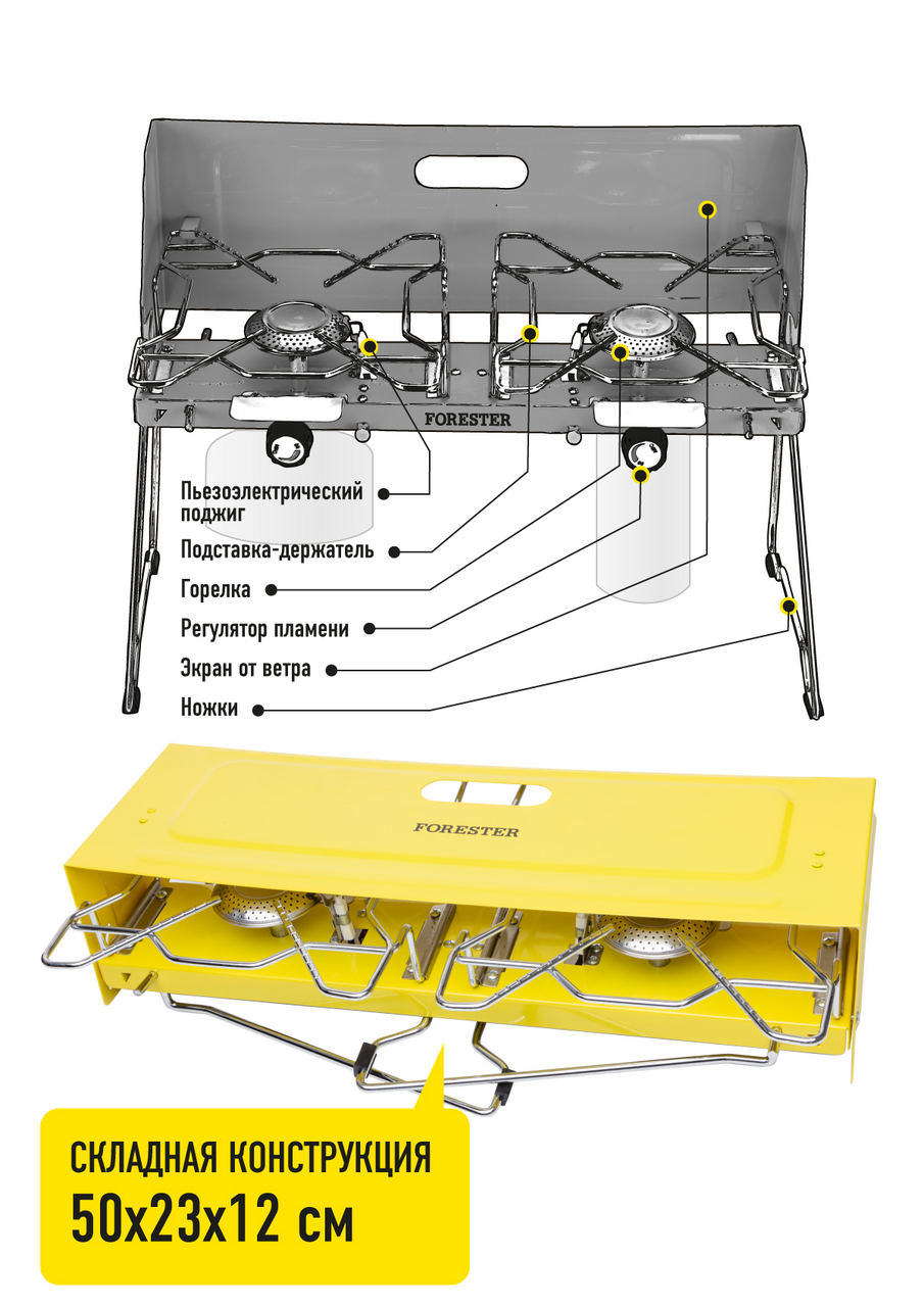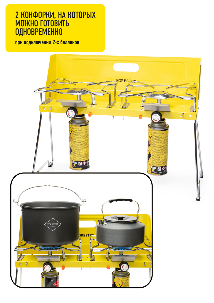 Плита Forester Mobile газовая 2 горелки оснащена двумя конфорками. Она позволяет приготовить пищу на даче, в походе. Работает на природном газе. Интенсивность горения варьируется с помощью механических регуляторов. Такая плита не занимает много места на столешнице. Она легко складывается для хранения и транспортировки. Экран защищает стену от брызг горячего масла. Ножки обеспечивают устойчивость на ровной поверхности.