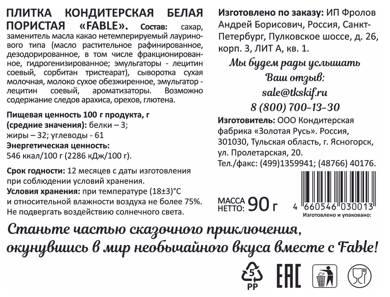 Сахар, заменитель масло какао нетемперируемый лауринового типа (масло растительное рафинированное, дезодорированное, в том числе фракционированное, гидрогенизированное; эмульгаторы - лецитин соевый, сорбитан тристеарат), сыворотка сухая молочная, молоко сухое обезжиренное, эмульгатор - лецитин соевый, ароматизаторы.