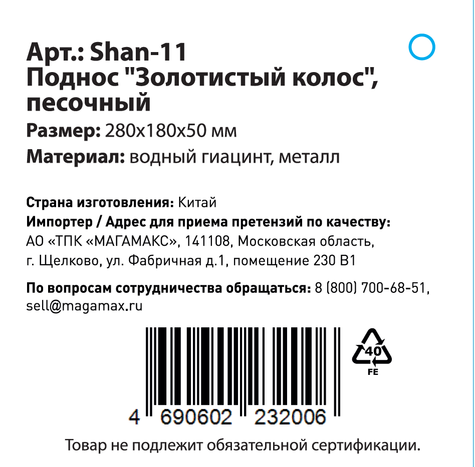 Поднос Natural House Золотистый колос плетеный, 28 x 18 x 5см