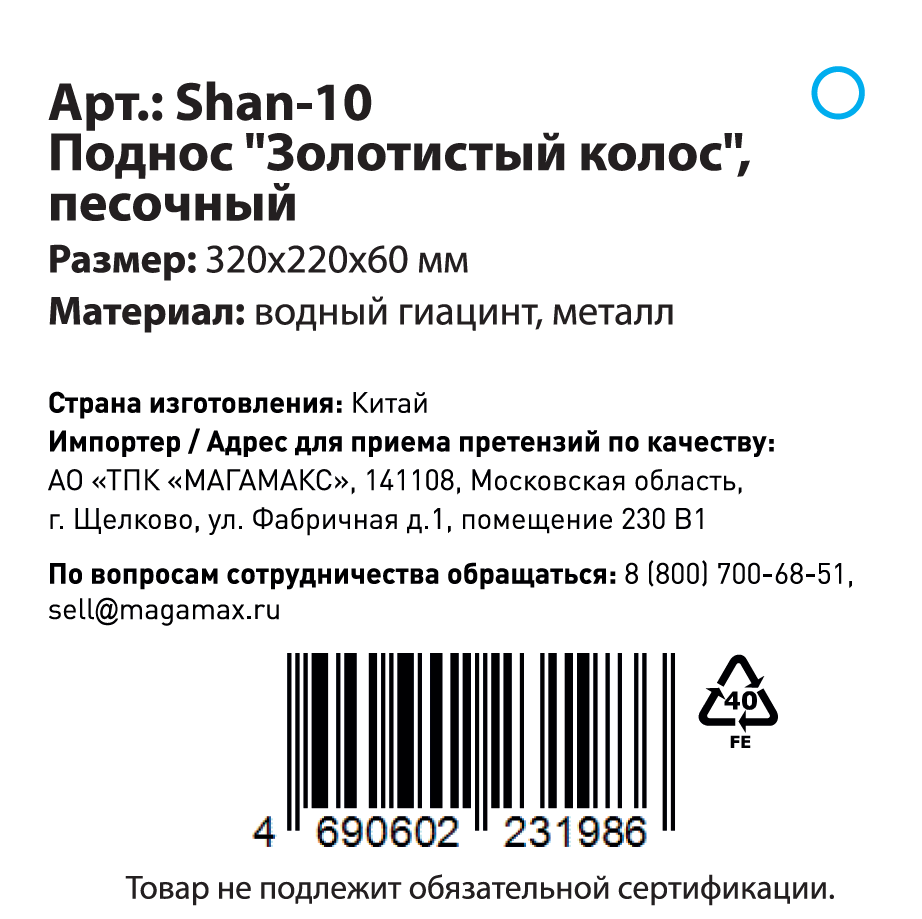 - Комплектация Поднос - 1 шт.