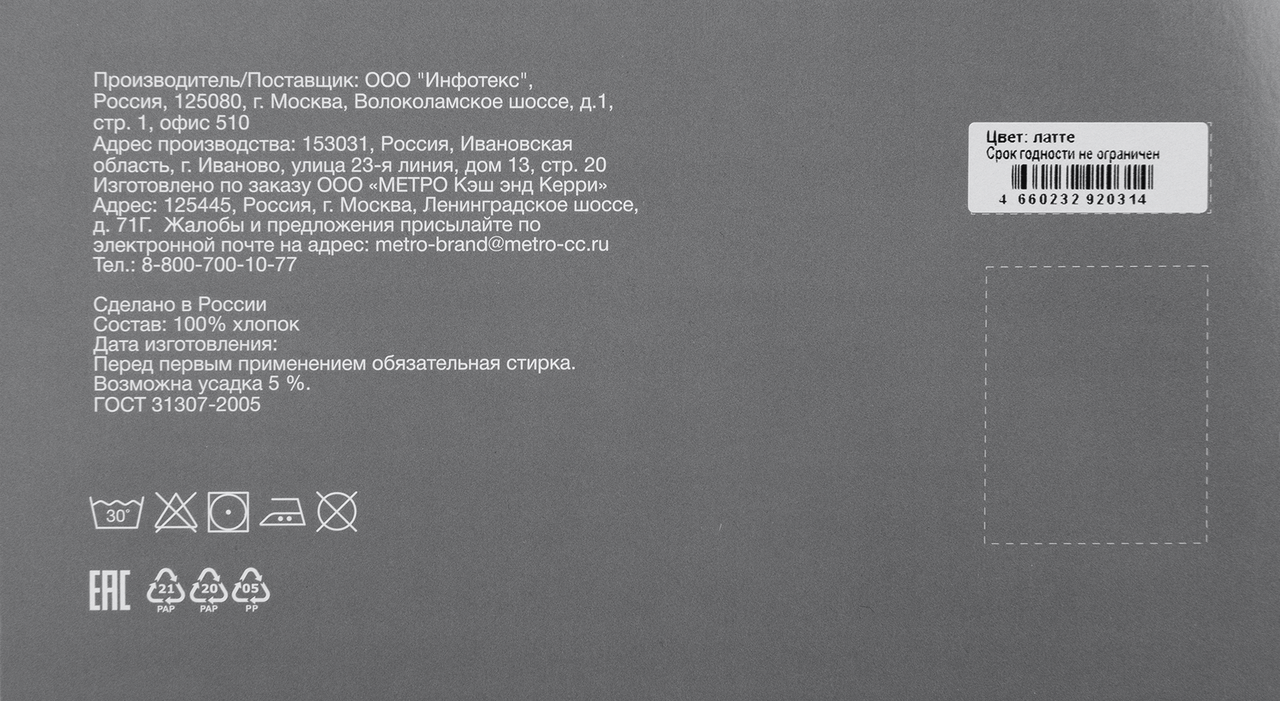 Tarrington House Пододеяльник в цвете латте, трикотаж, на молнии, 145 x 215 см выполнен из высококачественного трикотажного материала, мягкого и приятного на ощупь. Пододеяльник выгодно отличается стильным исполнением, что делает его отличным выбором для современной и классической спальни. Основные преимущества: — Высокое качество материала. Трикотажный состав пододеяльника Tarrington House обеспечивает прочность и долговечность изделия. Он не только приятен на ощупь, но и устойчив к истиранию, сохраняя свою форму и цвет даже после многократных стирок. — Удобство использования. Пододеяльник оснащен практичной молнией, которая позволяет легко и быстро надевать и снимать пододеяльник с одеяла. — Оригинальное сочетание цветов. Цвет пододеяльника Tarrington House является универсальным и легко сочетается с разнообразными оттенками интерьера спальни. Он помогает создать атмосферу уюта и умиротворения. — Простота ухода. Пододеяльник Tarrington House легко стирается в стиральной машине при низких температурах, что делает его уход простым и удобным. Высокая степень износостойкости материала позволяет использовать изделие на протяжении многих лет без потери внешнего вида и качества. Пододеяльник Tarrington House — это не только практичный элемент постельного белья, но и стильный аксессуар, который добавит шарм и уют в спальню. Обладая высоким качеством, комфортом использования и привлекательным дизайном, он является отличным выбором для тех, кто ценит комфорт и стиль в своем доме. Рекомендуется постельное издели�� стирать в машинке при температуре не выше 40 градусов, избегая использования отбеливающих средств. После стирки следует высушить пододеяльник на воздухе или использовать низкую температуру сушилки для предотвращения усадки изделия.