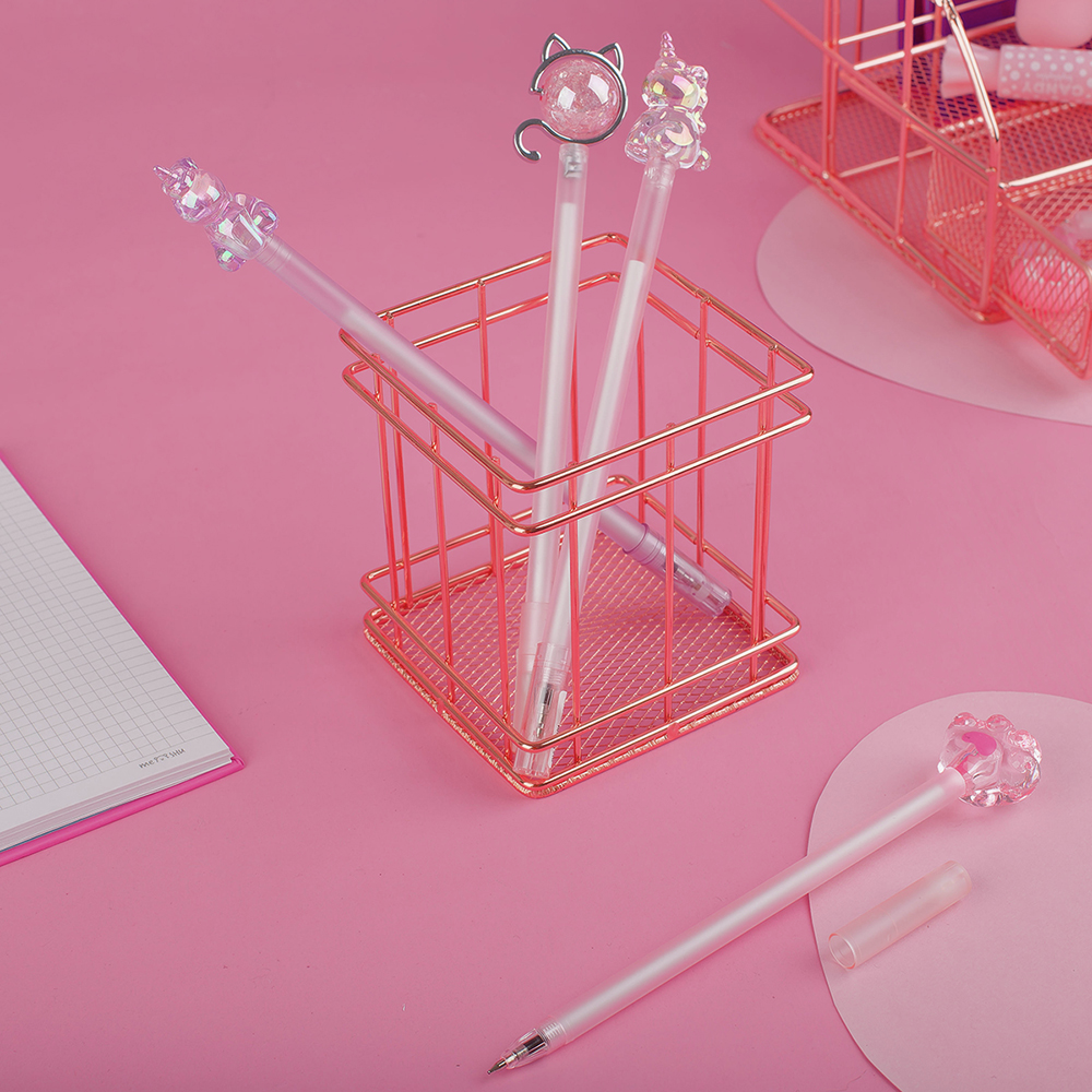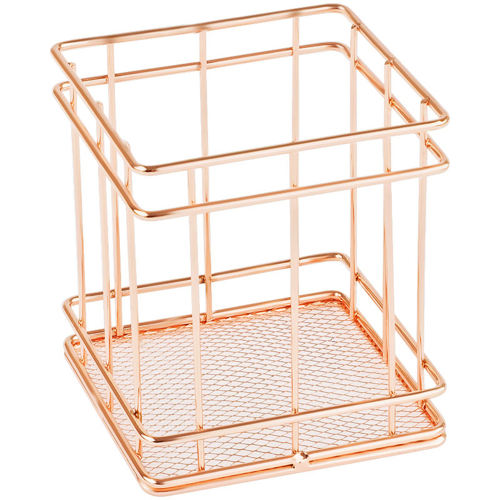 Удобный аксессуар предназначен для хранения письменных принадлежностей и организации порядка на рабочем месте. Цвет розового золота и геометрический дизайн делают его ещё и стильным подарком.