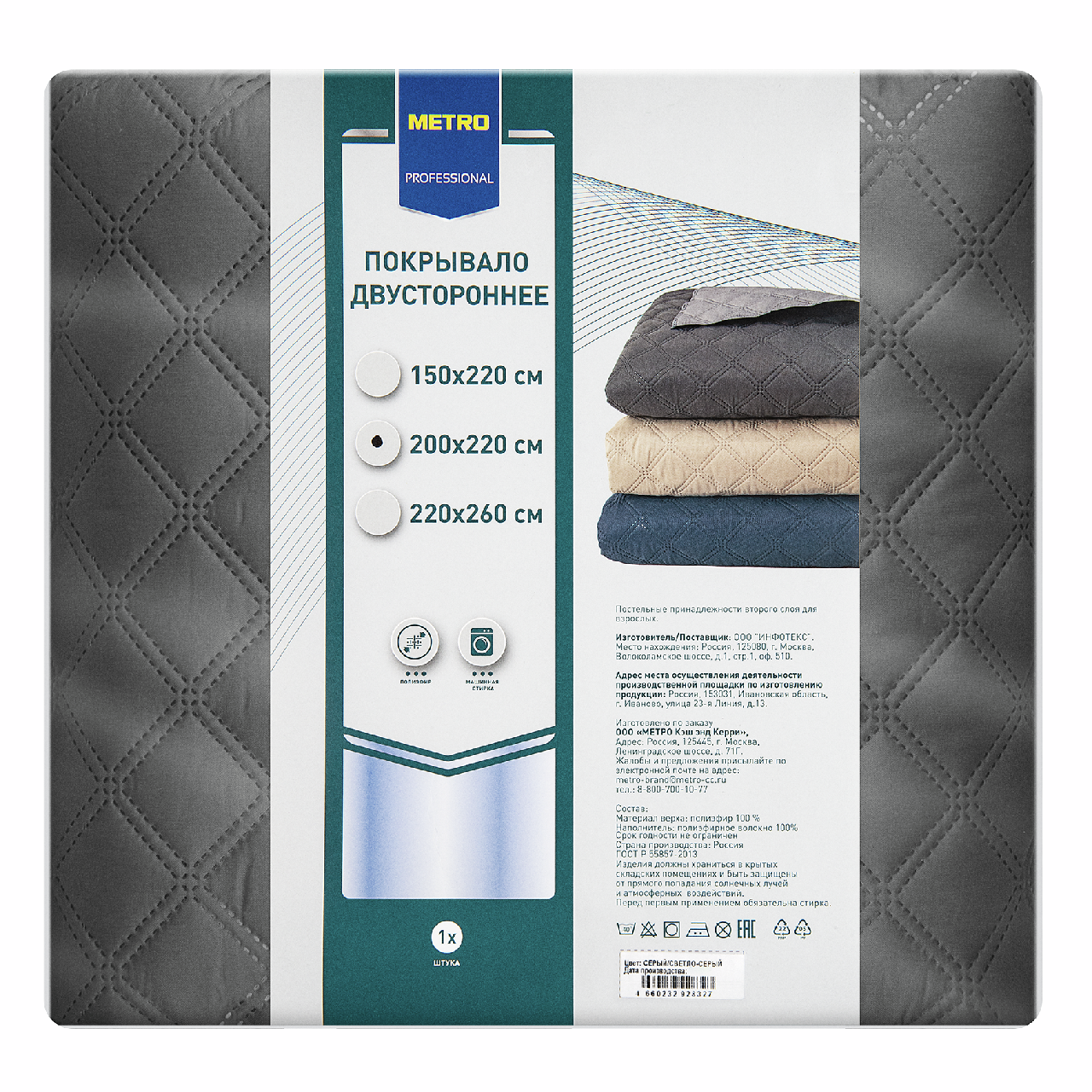 METRO PROFESSIONAL Покрывало двустороннее серое-светло-серое полиэстер-синтепон, 200 x 220см
