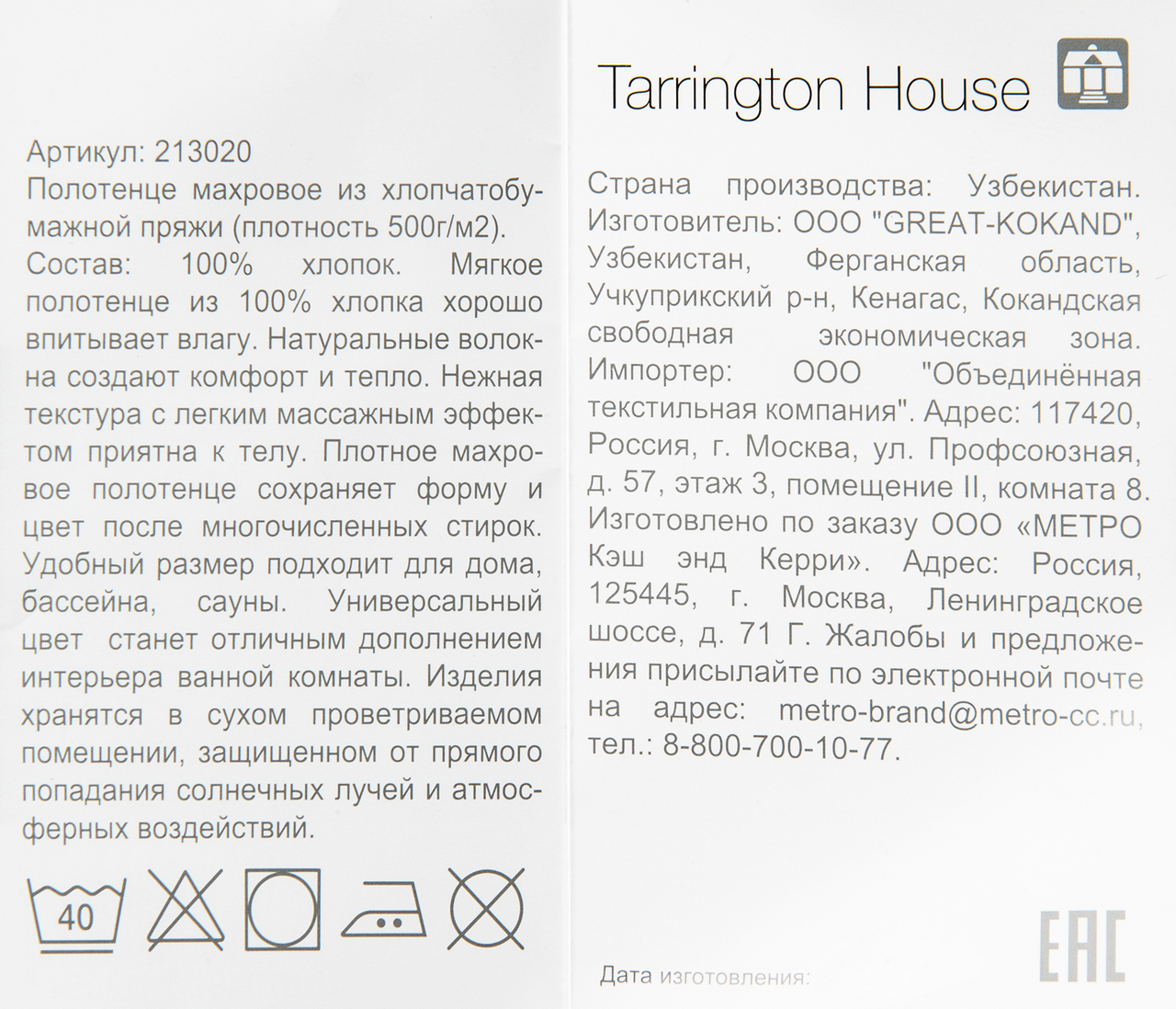 - Бренд TARRINGTON HOUSE