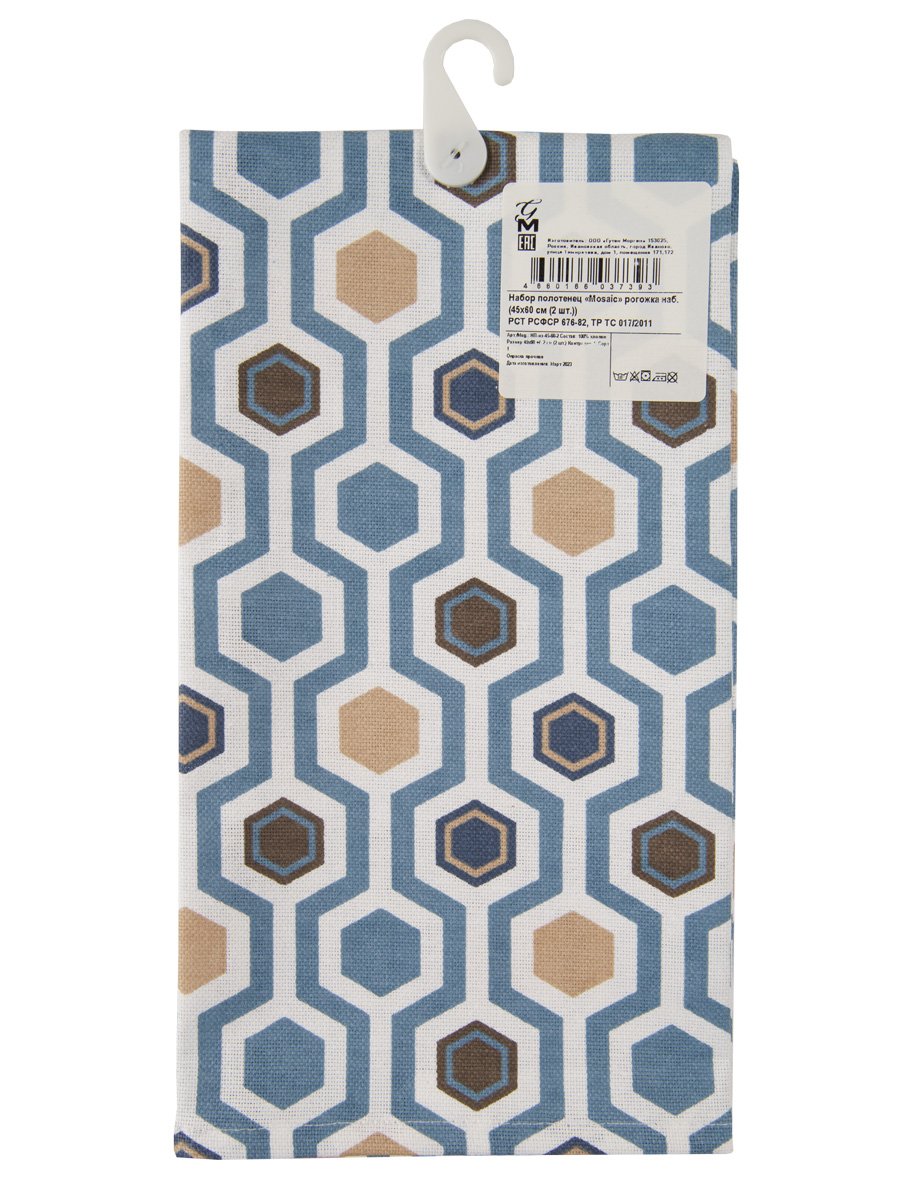 Полотенце кухонное Guten Morgen рогожка мозаика 45 x 60 см, 2 шт. выполнены из 100% хлопковой ткани. Она износостойкая и прочная, не скатывается и не электризуется, гигиеничная и гипоаллергенная, сохраняет свой первоначальный вид и цвет на протяжении всего срока службы. При производстве используются стойкие красители. У каждого полотенца имеется петля-вешалка. Замечательный подарок женщине на любой праздник.