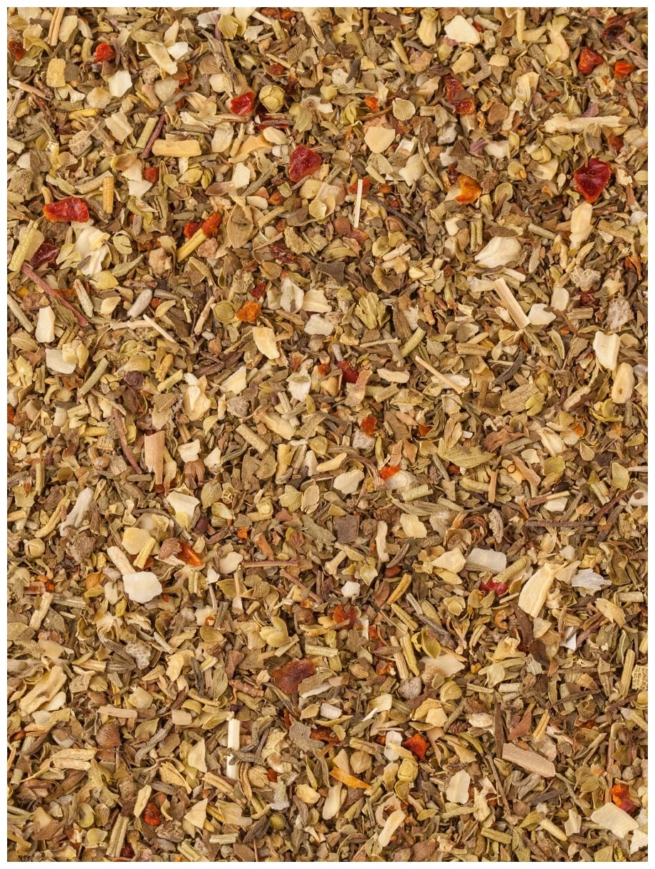 Лук, розмарин, тимьян, базилик, паприка, орегано, шалфей, мята.