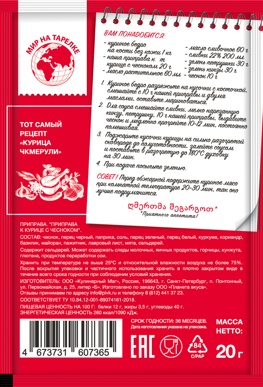 Приправа Мир на тарелке к курице с чесноком, 20г