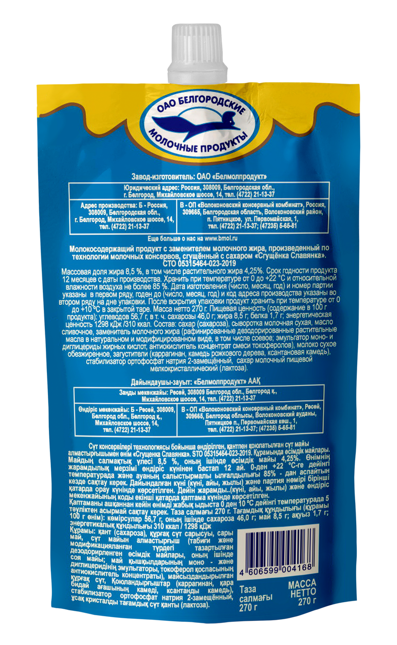 Продукт молокосодержащий Славянка БМП Сгущенка с сахаром 8.5%, 270г