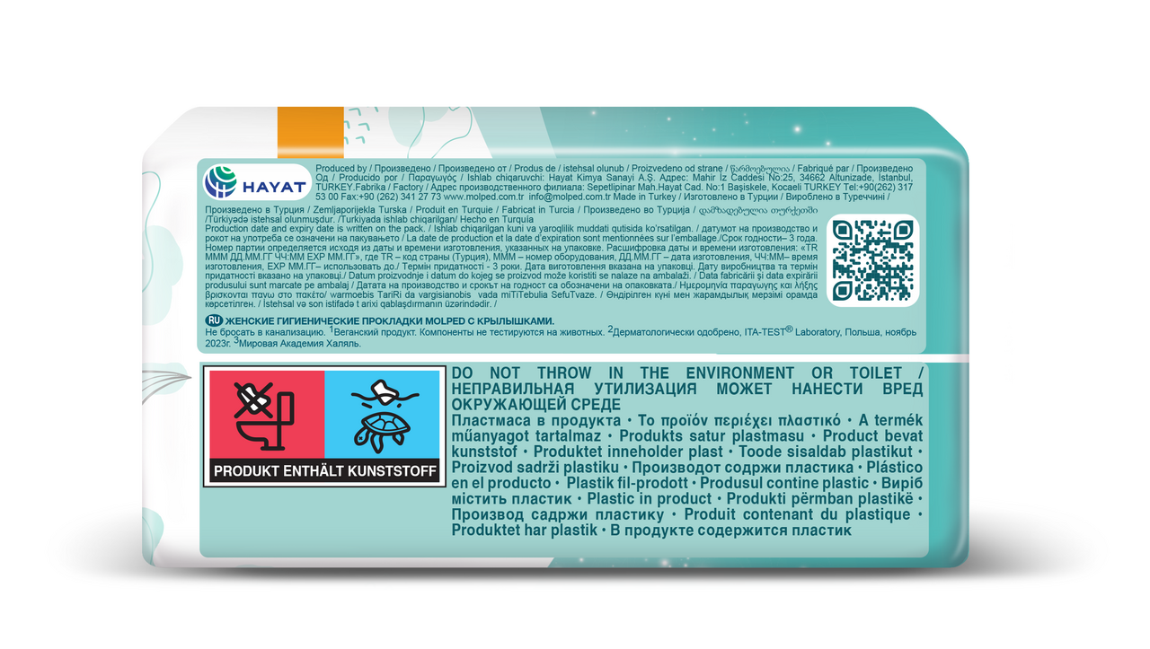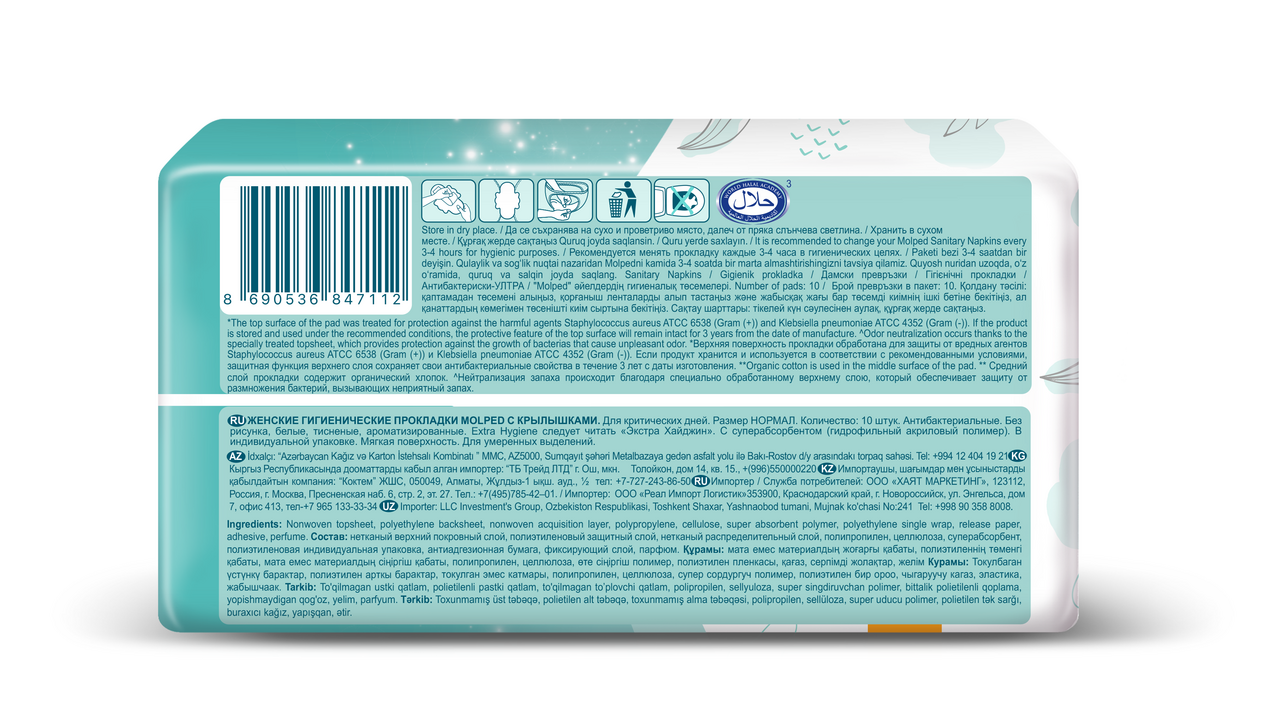 Прокладки Molped Extra Hygiene c мягкой поверхностью и добавлением органического хлопка помогают предотвратить неприятный запах, вызываемый бактериями. Специальный антибактериальный слой блокирует рост бактерий на поверхности прокладки. Molped Extra Hygiene протестированы дерматологами* и обеспечат максимальный комфорт твоей коже. * Дерматологически одобрено, ITA-TEST Laboratory, Польша, ноябрь 2023г.