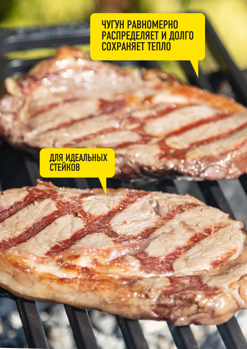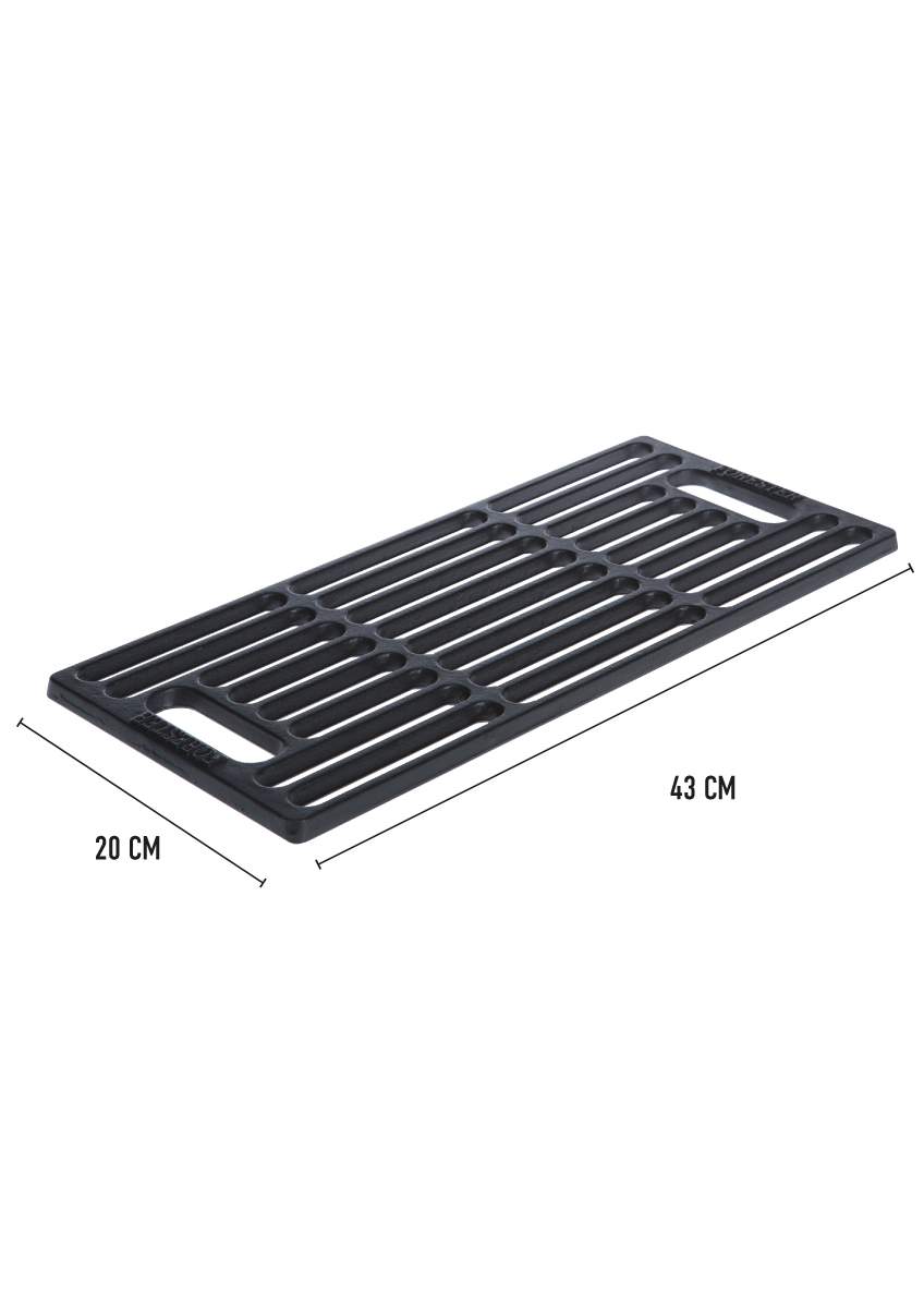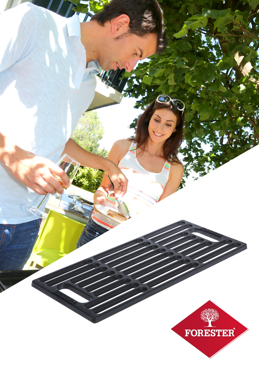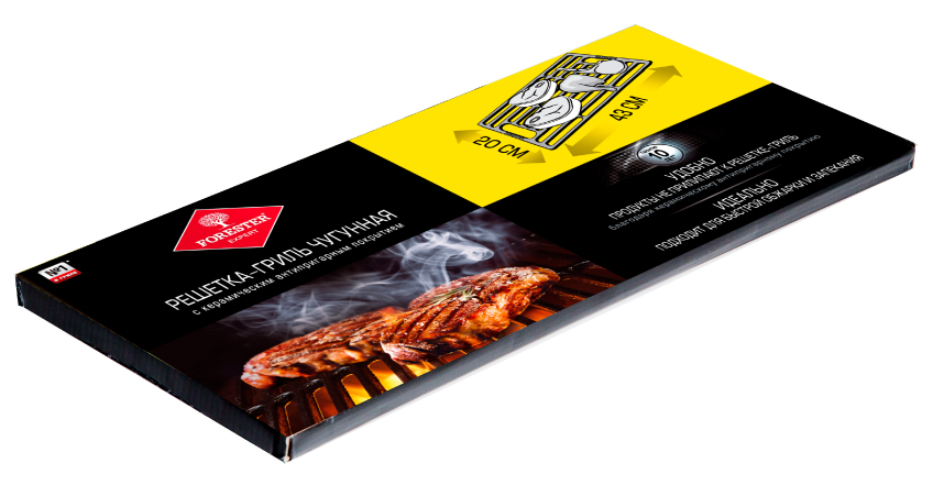 Решетка-гриль Forester чугунная с керамическим антипригарным покрытием, 43 х 20см – незаменимый аксессуар для тех, кто любит готовить блюда на открытом огне. Ее размеры позволяют разместить одновременно несколько стейков, овощи, грибы и другие продукты. Если используется большой мангал, то можно положить на него одновременно несколько секций. Повар может регулировать размер жарочной поверхности в соответствии с текущими потребностями. Решетка из чугуна будет служить долгие годы. Это прочный материал, который не содержит опасных примесей. Он не подвержен коррозии. При контакте с продуктами и нагревании он не выделяет токсичных веществ, не меняет вкусовые качества блюд и не впитывает запахов. У чугуна высокая теплоемкость и низкая теплоотдача. Такие свойства делают этот металл идеальным для приготовления мяса на открытом огне. Решетка быстро нагревается, хорошо удерживает тепло, распределяет его равномерно и долго сохраняет. Специальное антипригарное покрытие предотвращает прилипание кусочков пищи к горячему металлу и существенно облегчает уход за изделием. После окончания работы оно легко очищается от жира. Достаточно помыть его под проточной водой (холодной или горячей). При необходимости можно использовать моющие средства.