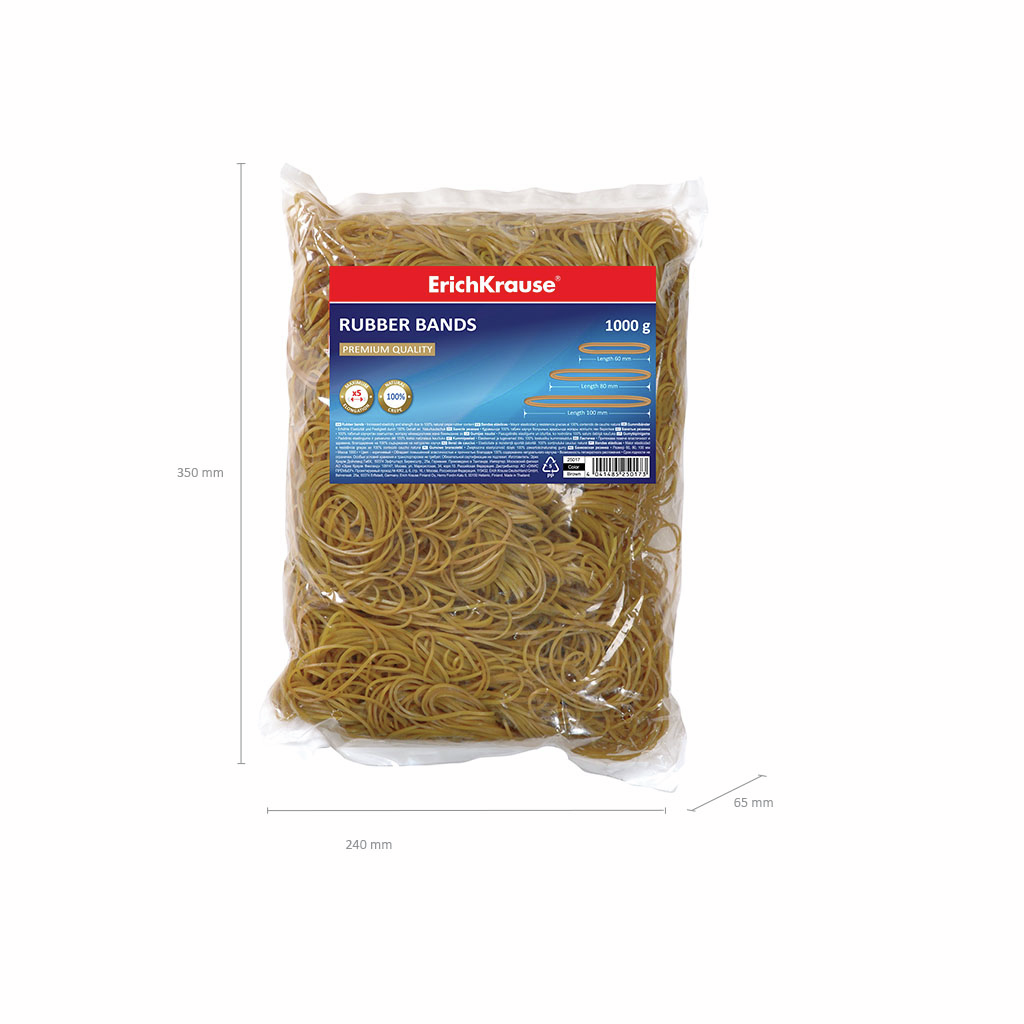 Суперпрочные банковские резинки Erich Krause каучуковые, 1кг обладают максимальным коэффициентом растяжения, устойчивы к разрывам и имеют более длительный срок службы благодаря высокому содержанию натурального каучука. Подходят для многократного использования.