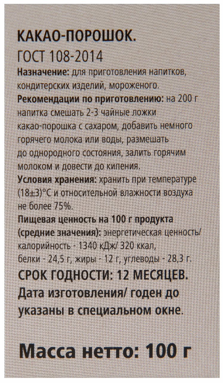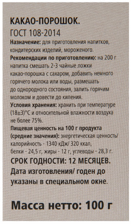- Тип Какао-порошок
