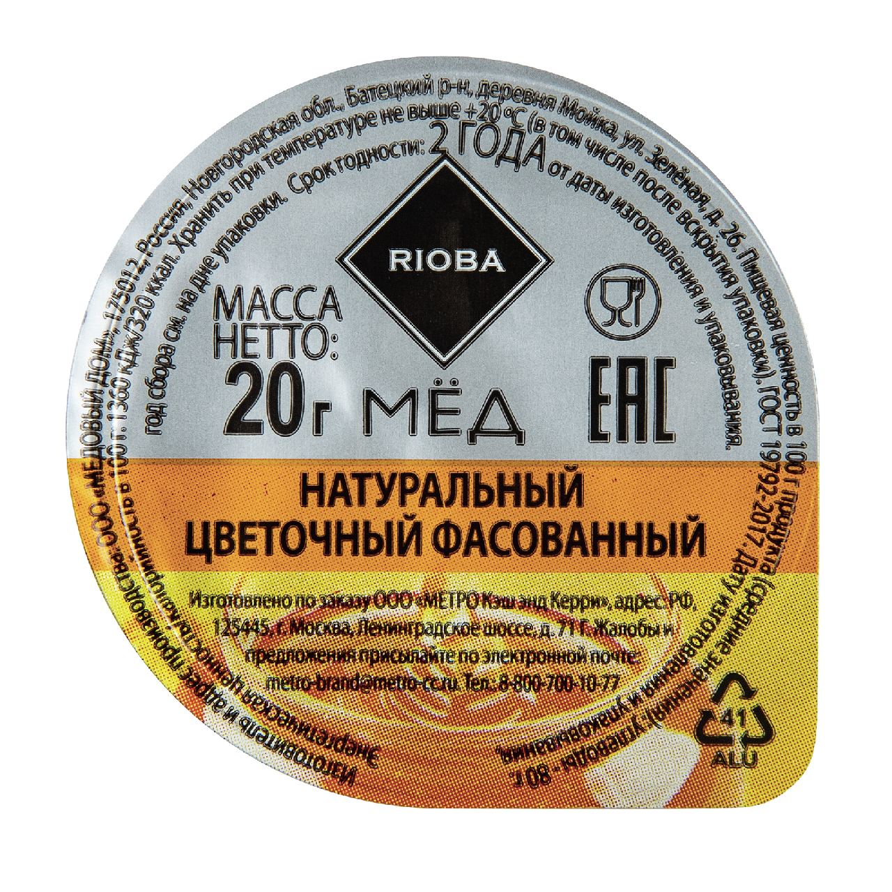 RIOBA Мед цветочный порционный натуральный (20г х 20шт), 400г