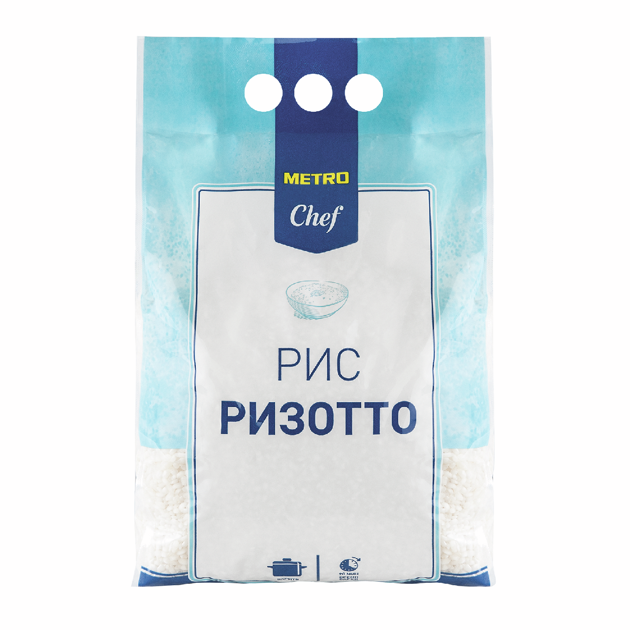 Рис ризотто METRO Chef выпускается в упаковке объемом 3 кг, чего хватит на долгий срок использования. Продукт отечественного производителя имеет нежную кремовую текстуру и приятный аромат после приготовления. Чтобы крупа не разварилась, рекомендуется ее готовить до состояния al dente. Благодаря особенностям рис становится основным ингредиентом для приготовления паэльи и ризотто. Чтобы раскрыть особый аромат злака, рекомендуется добавить в блюдо белое вино и лук. Рис является одним из основных блюд для диетического питания, также его используют во время поста. Большое количество углеводов позволяет надолго избавиться от чувства голода и придаст дополнительные силы и энергию.
