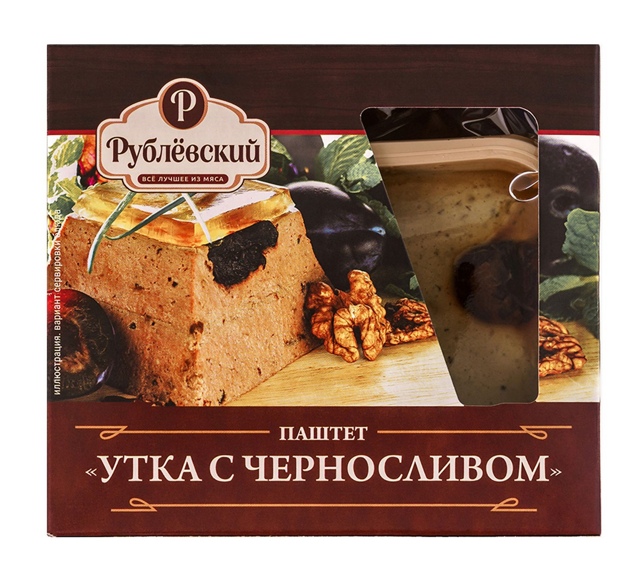 Деликатесный мясной паштет Утка с черносливом торговой марки Рублевский МК производится по оригинальному рецепту из высококачественного мяса утки, свинины и куриной печени. Особый вкус и нежный аромат продукту придают чернослив и отборные специи. Для быстрого и простого перекуса паштет намазывают на ломтик хлеба или тост. Также деликатес можно использовать для приготовления закусочных канапе и тарталеток на праздничный стол или фуршет.