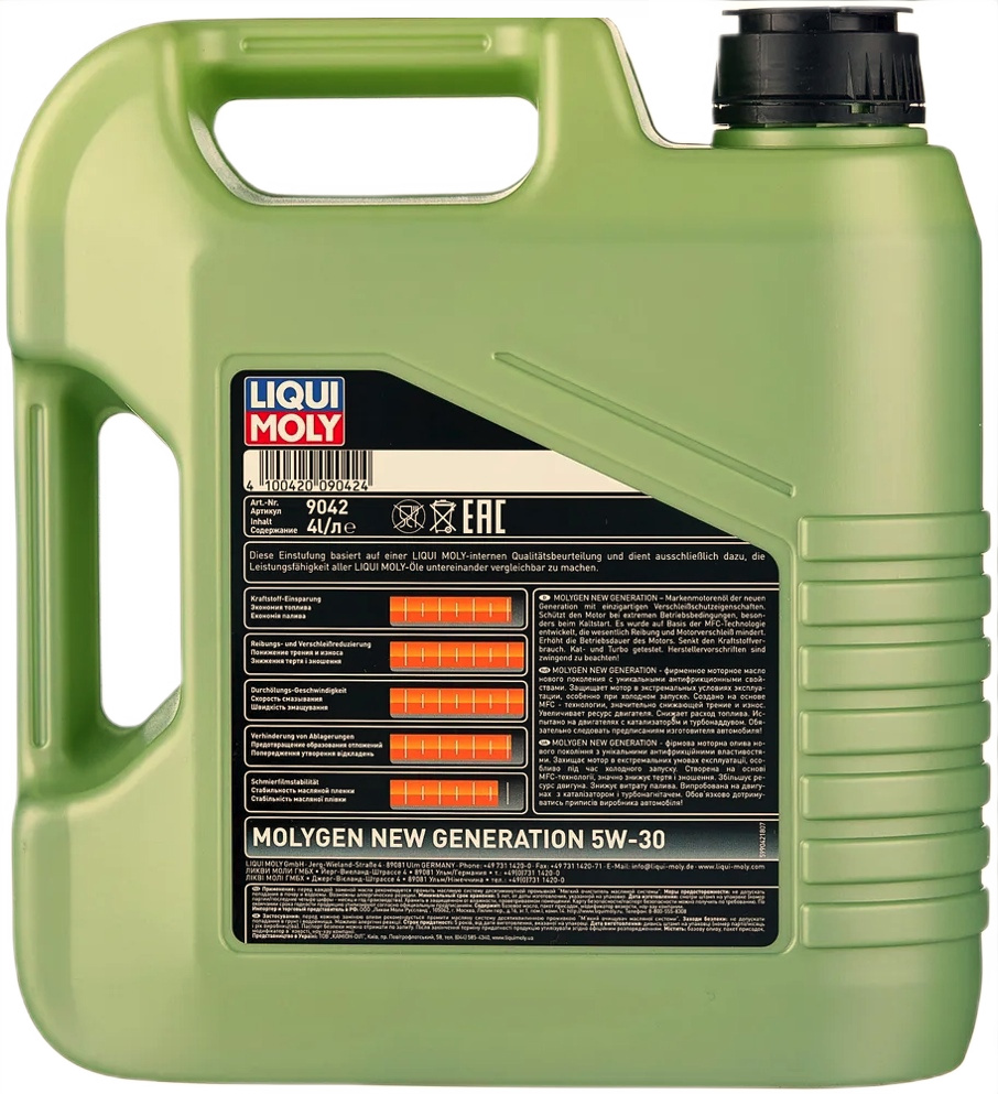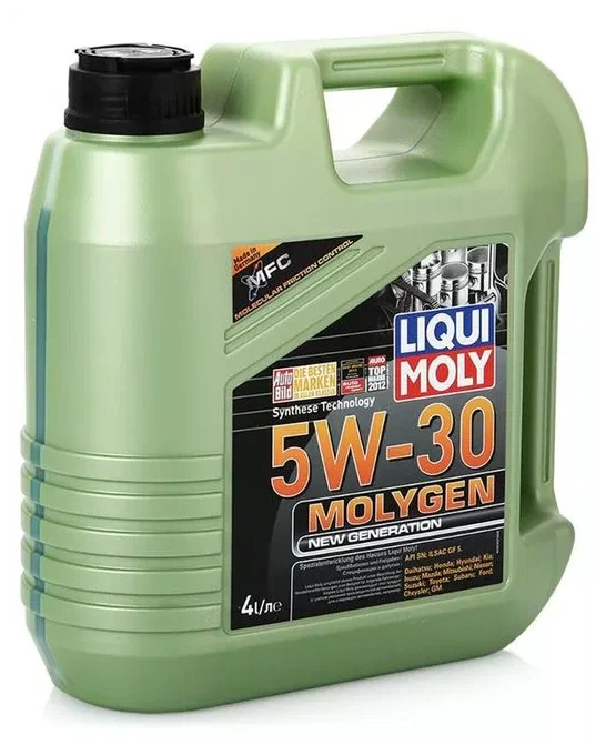Масло моторное Liqui Moly Molygen 5W-30 с присадками, 4л может быть использовано в большом количестве марок машин: Honda, Mazda, Mitsubishi, Nissan, Daihatsu, Hyundai, Kia, Isuzu, Suzuki, Toyota, Subaru, Ford, Chrysler, GM. Эксплуатация жидкости на искусственной высокотехнологичной базе будет удобной и безопасной в любой сезон года, потому что вещество не изменяет свои свойства при перепадах температур. Liqui Moly Special Tec омывает запчасти мотора, уменьшая трение и обеспечивая сохранение энергии. Низкий класс вязкости позволяет смазке незамедлительно поступать ко всем запчастям даже в непрогретой машине. Входящие в состав специальные присадки нейтрализуют активные химические соединения, образующиеся при сжигании топлива. Жидкость эффективно охлаждает элементы мотора, защищая их от коррозии
