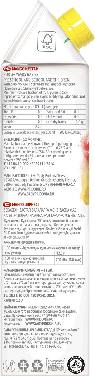 Говорят, что самое вкусное и ароматное манго растет в Индии. Это подтвердят наши специалисты, которым в поисках лучшего удалось создать насыщенный, густой и душистый нектар Сады Придонья Exclusive, выбрав лучшие сорта манго. Внешний вид упаковки может различаться. Изменение дизайна – временная мера.