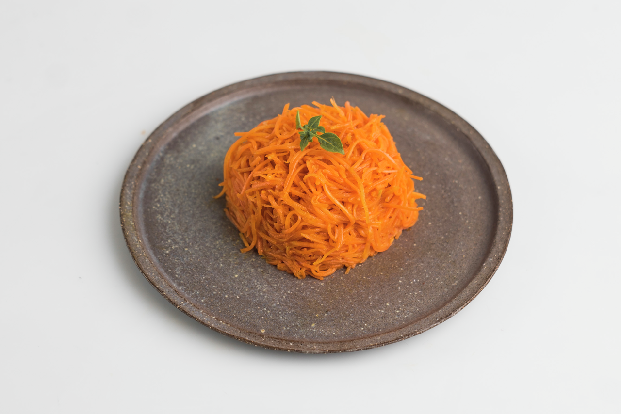 Морковь по-корейски, 600 г с ароматной, возбуждающей аппетит, заправкой притянет к себе все внимание. Она понравится гостям и домочадцам. Сочная морковка нашинкована на тонкие полоски. Ее можно подать как самостоятельное блюдо или в виде дополнения к гарниру. С ее помощью получается сочная шаурма в комбинации с картофельным пюре, репчатым луком и тонким армянским лавашом. Салат сделает любой прием пищи максимально полезным и сытным. Он хорошо дополнит поджаренное на гриле или запеченное в духовке мясо или белую рыбу. Включение моркови в рацион улучшает зрение, способствует профилактике сердечно-сосудистых заболеваний. Множество витаминов и растительных волокон способствует активному выделению желудочного сока, улучшает п��щеварение и микрофлору кишечника.