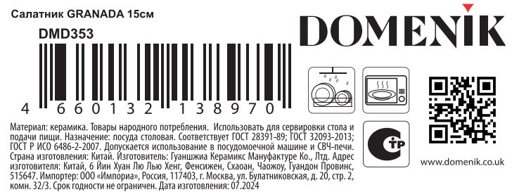 Предназначен для сервировки стола. Выполнен из керамики, поэтому устойчив к коррозии. Имеет гладкую поверхность, благодаря чему легко моется. Просторный объем позволяет разместить много пищи.