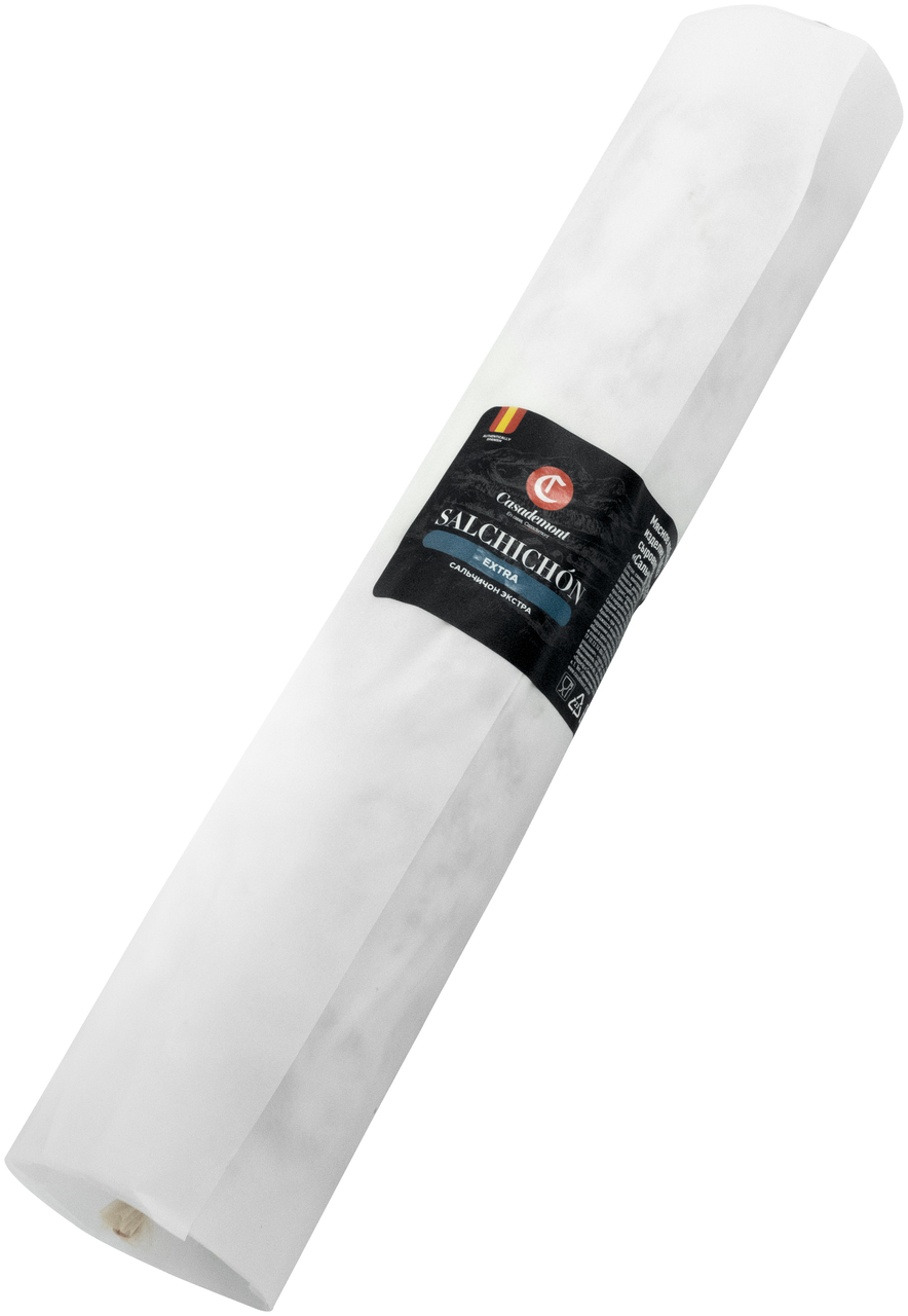 Колбаса сыровяленая Сальчичон Экстра от торговой марки Casademont обладает идеальным вкусом и нежным ароматом средиземноморских пряностей. Мясной деликатес готовится из нежной свинины и прекрасно подходит для сервировки праздничного стола, приготовления сытных сэндвичей, салатов и закусок.