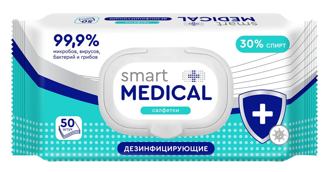 Салфетки влажные дезинфицирующие Smart medical с пластиковым клапаном 21 x 10 x 4 см, 50 шт. — надежное средство для эффективной защиты. Эти специальные салфетки обладают сильным антибактериальным эффектом, который позволяет эффективно бороться с вредными микроорганизмами. Влажные салфетки обеспечивают гарантированную безопасность и надежность. Они подходят для использования на любых поверхностях и предназначены для универсального применения в доме, офисе или на отдыхе. Изделия обладают антимикробным действием в отношении возбудителей острых респираторных заболеваний бактериальной и вирусной этиологии, кишечных инфекций бактериальной и вирусной этиологии, грибковых заболеваний. Салфетки имеют удобный формат и легко укладываются в сумку или карман, что делает их идеальными для использования на выезде или в пути. Благодаря своей специальной формуле, эти салфетки не только дезинфицируют, но и оставляют поверхности чистыми и блестящими. Это забота о своей безопасности и здоровье, а также о здоровье ваших близких. Надежность, эффективность и универсальность делают их незаменимым помощником в современном быстром темпе жизни.