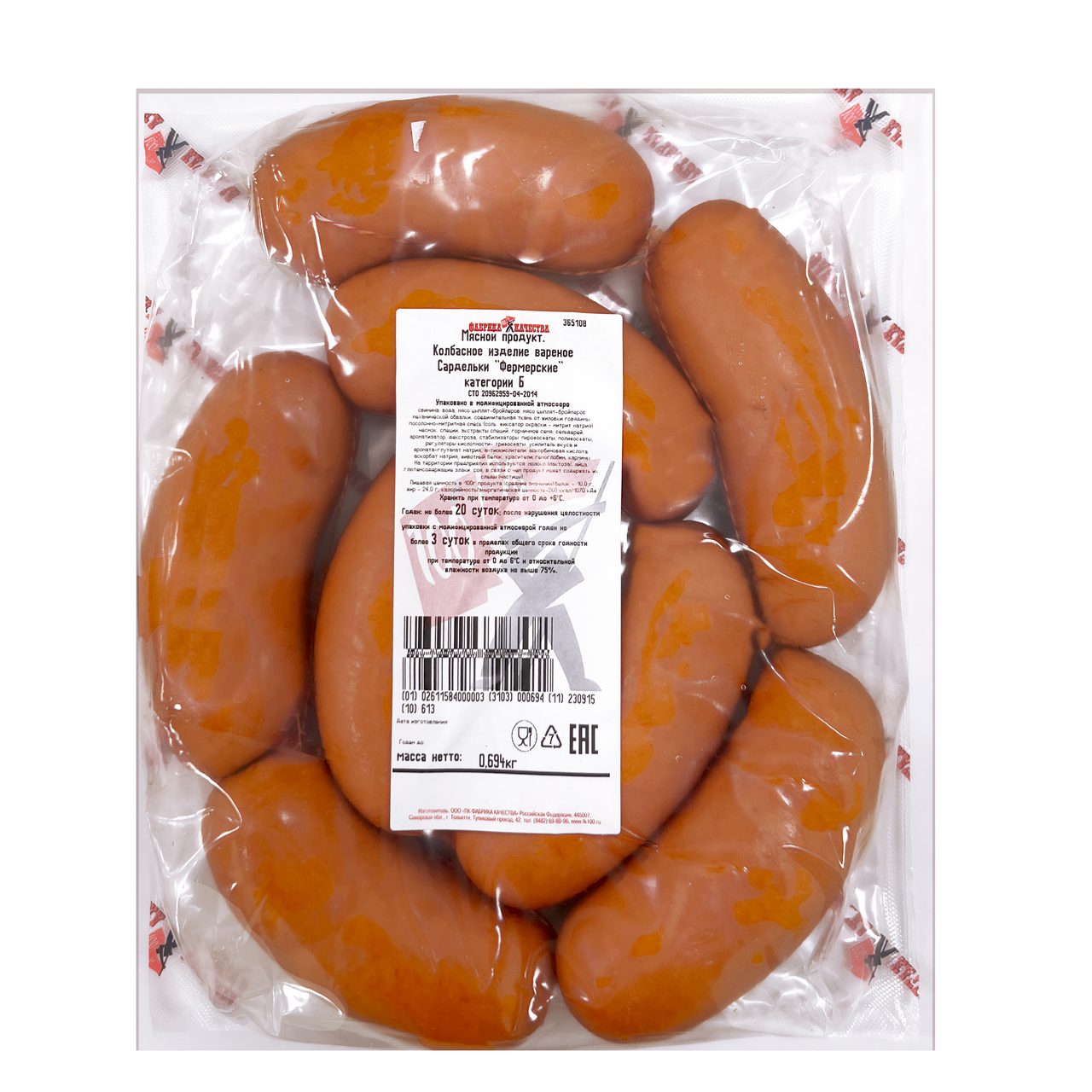 Сардельки Фабрика качества фермерские вареные, ~1кг