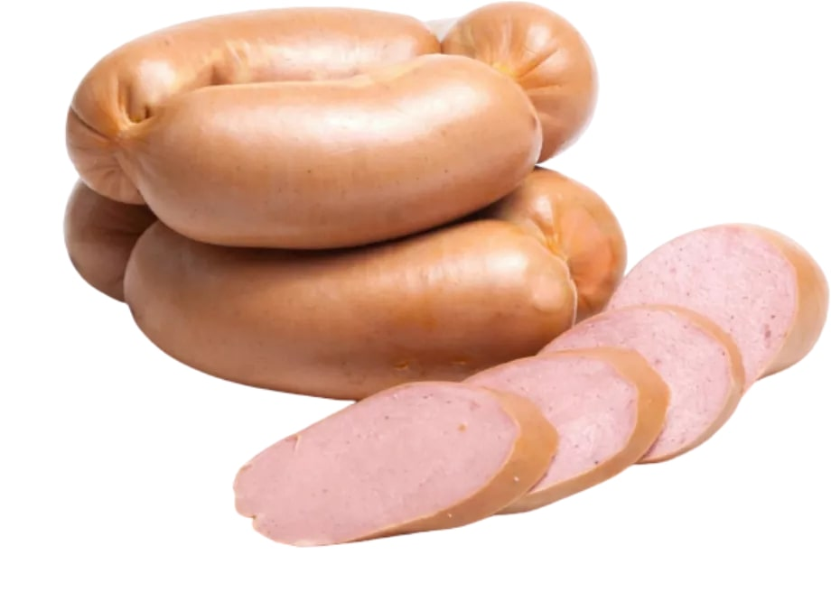 Мясо цыпленка бройлера, свинина, вода питьевая, животный белок, молочный белок, меланж, смесь посолочно-нитритная ( соль, фиксатор окраски нитрит натрия) , соль поваренная, лактоза, декстроза, мальтодекстрин, соевый белок, сухое молоко, стабилизаторы (полифосфат натрия, пирофосфат натрия) , регулятор кислотности ( трифосфат натрия) , загустители ( каррагинан, конжаковая камедь), желирующий агент (хлорид калия), антиокислитель ( изоаскорбат натрия ), специи (сельдерей, кардамон, перец черный, перец душистый, чеснок), усилитель вкуса и аромата (глутамат натрия).
