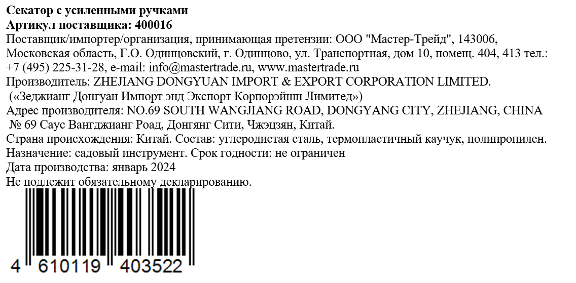 Секатор Gardeneer с усиленными ручками, 20.5см
