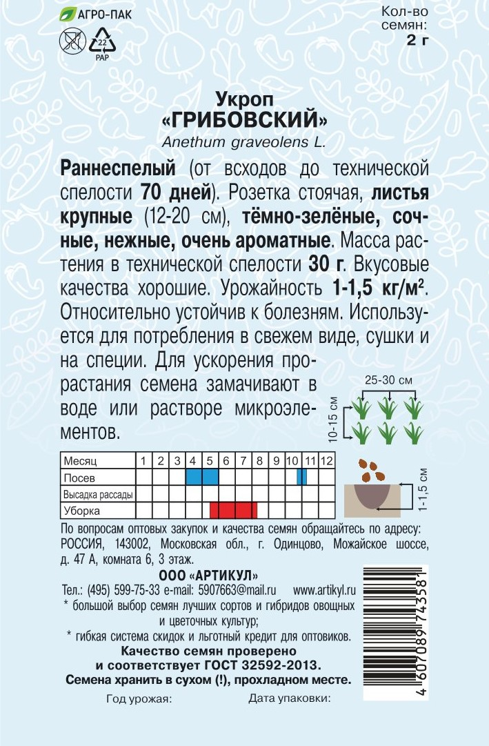 Раннеспелый (от всходов до технической спе- лости 70 дней). Розетка стоячая, листья крупные (12-20 см), тёмно-зелёные, сочные, нежные, очень ароматные. Масса растения в технической спелости 30 г. Вкусовые качества хорошие. Урожайность 1-1,5 кг/м2. Относительно устойчив к болезням. Используется для потребления в свежем виде, сушки и на специи. Для ускорения прорастания семена замачивают в воде или растворе микроэлементов. + Улучшает пищеварение, снижает артериальное давление, применяется как потогонное и отхаркивающее средство при простудных заболеваниях. Размолотые семена и отвары сушёной зелени рекомендуются при гастритах и заболеваниях печени.