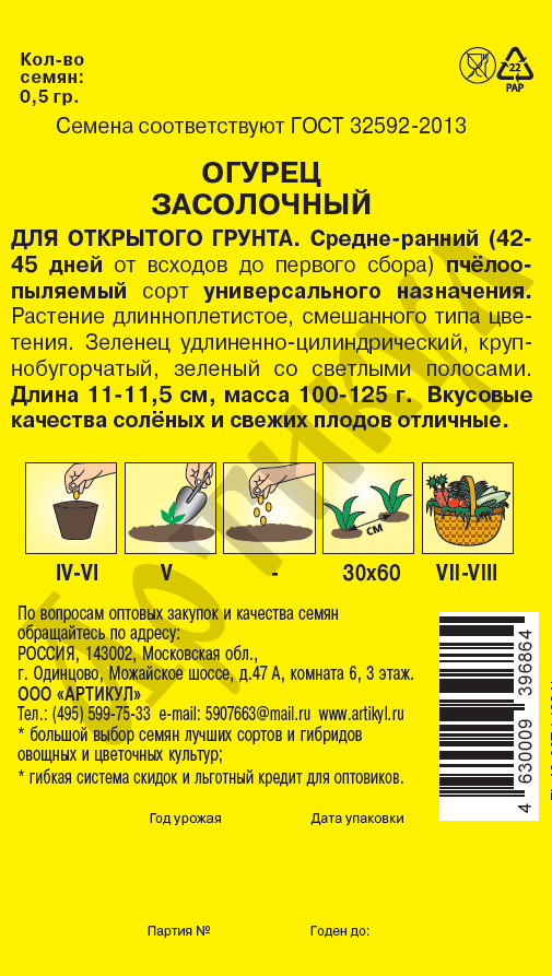 Семена Артикул Дисплей 33 эконом огурец засолочный