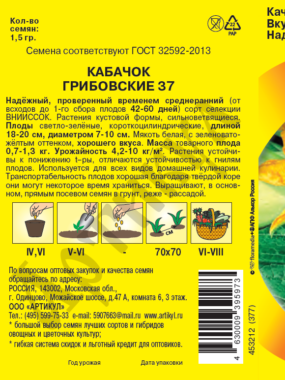 Семена Артикул Дисплей 36 эконом кабачок грибовской