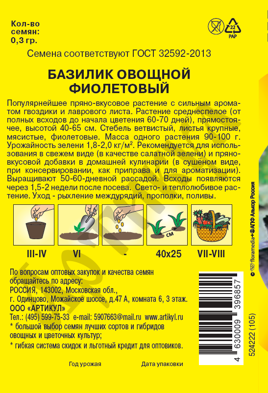 Семена Артикул Дисплей 39 эконом базилик фиолетовый