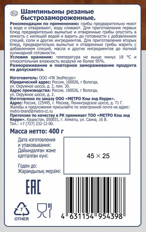 METRO Chef Шампиньоны резаные замороженные, 400г
