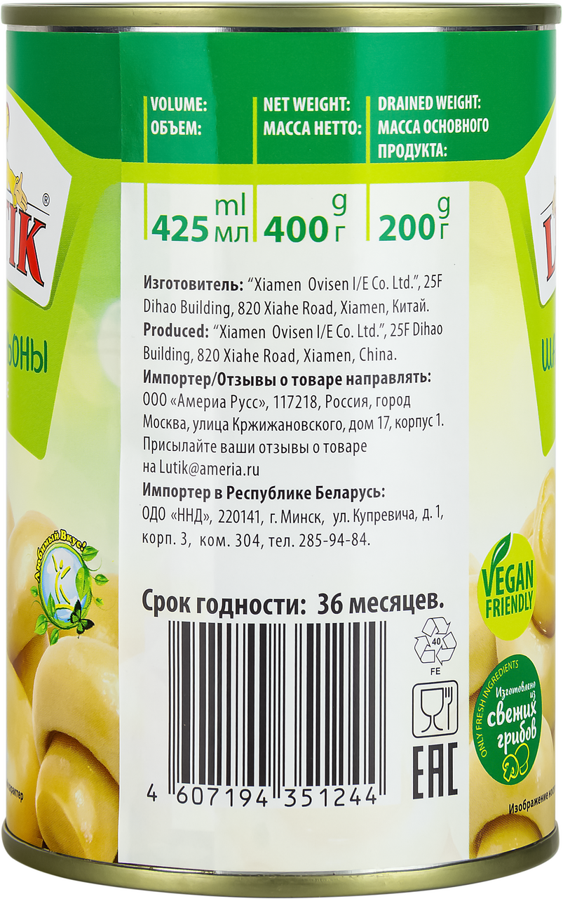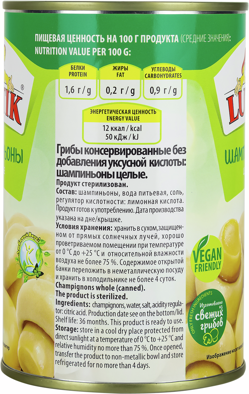 Шампиньоны, вода питьевая, соль, регулятор кислотности: лимонная кислота.