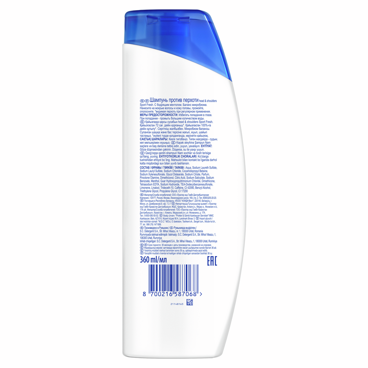 Шампунь против перхоти Head & Shoulders (Хэд энд Шолдерс) Sport Fresh ухаживает за волосами и кожей головы, полностью оправдывая ожидания даже самых требовательных мужчин. Он эффективно очищает кожу головы и волосы, придавая им приятный насыщенный аромат сандала и обеспечивая защиту от шелушения, зуда и сухости на срок до 72 часов. Эффективен даже против стойкой перхоти. Технология шампуня для волос Head & Shoulders обеспечивает клинически доказанную защиту от перхоти до 100% (при регулярном использовании). Обновленная формула с активным ингредиентом Пироктон Оламином удаляет как видимую, так и невидимую перхоть, доставляя в поры в 2Х больше защитных ингредиентов.