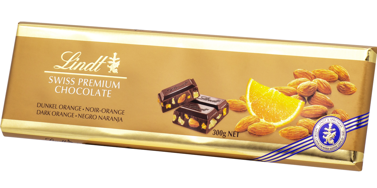 Шоколад Lindt Gold горький с апельсином и миндалем, 300г