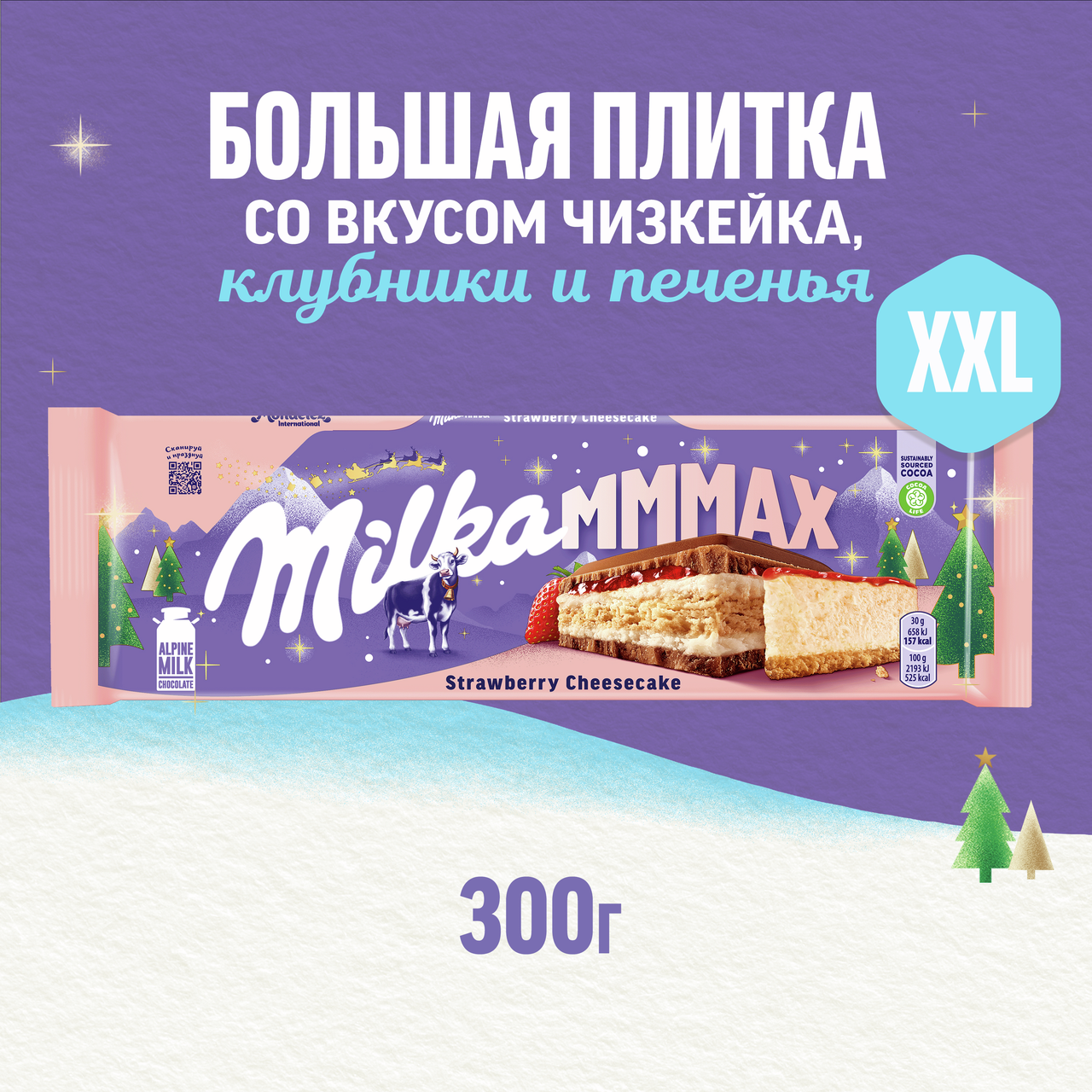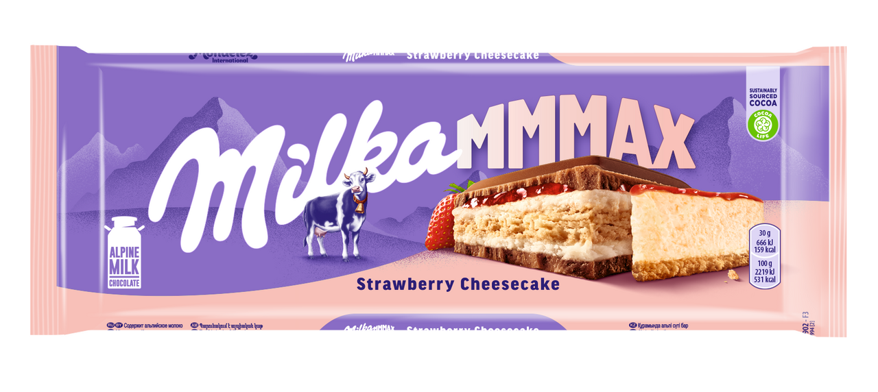 Шоколад Milka Mmax молочный клубничный чизкейк, 300г