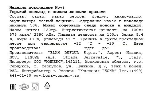 Сахар, какао тертое, фундук, масло-какао, эмульгатор: соевый лецитин.