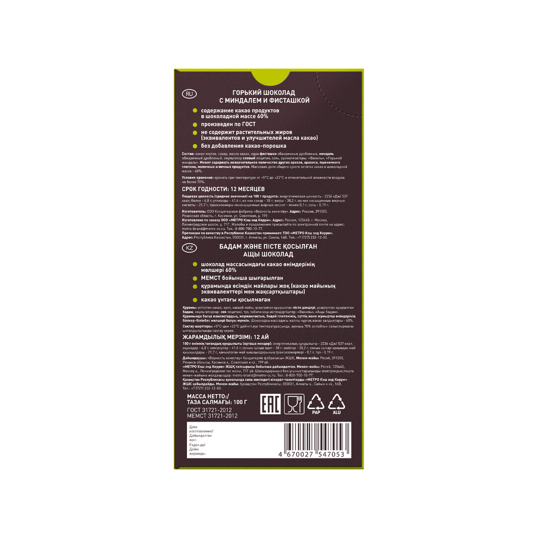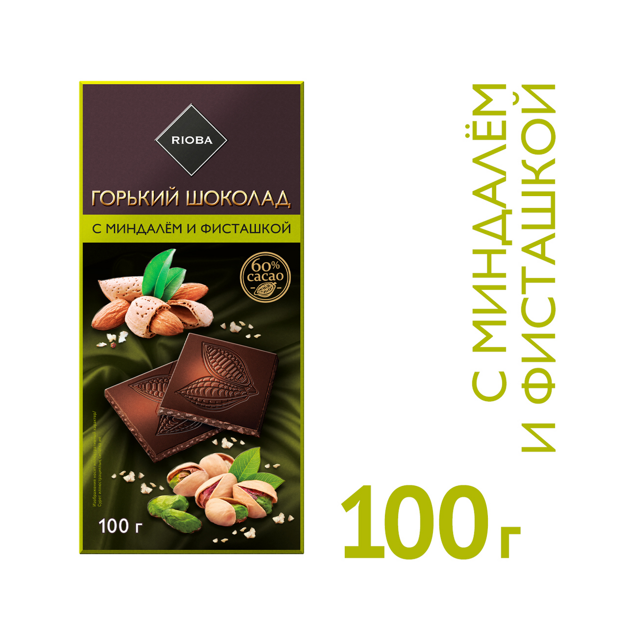 RIOBA Шоколад горький миндаль, фисташка, 100г