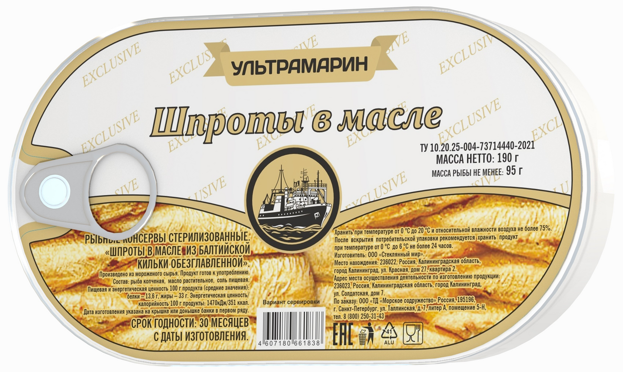 Шпроты Ультрамарин Килька балтийская в масле, 190г
