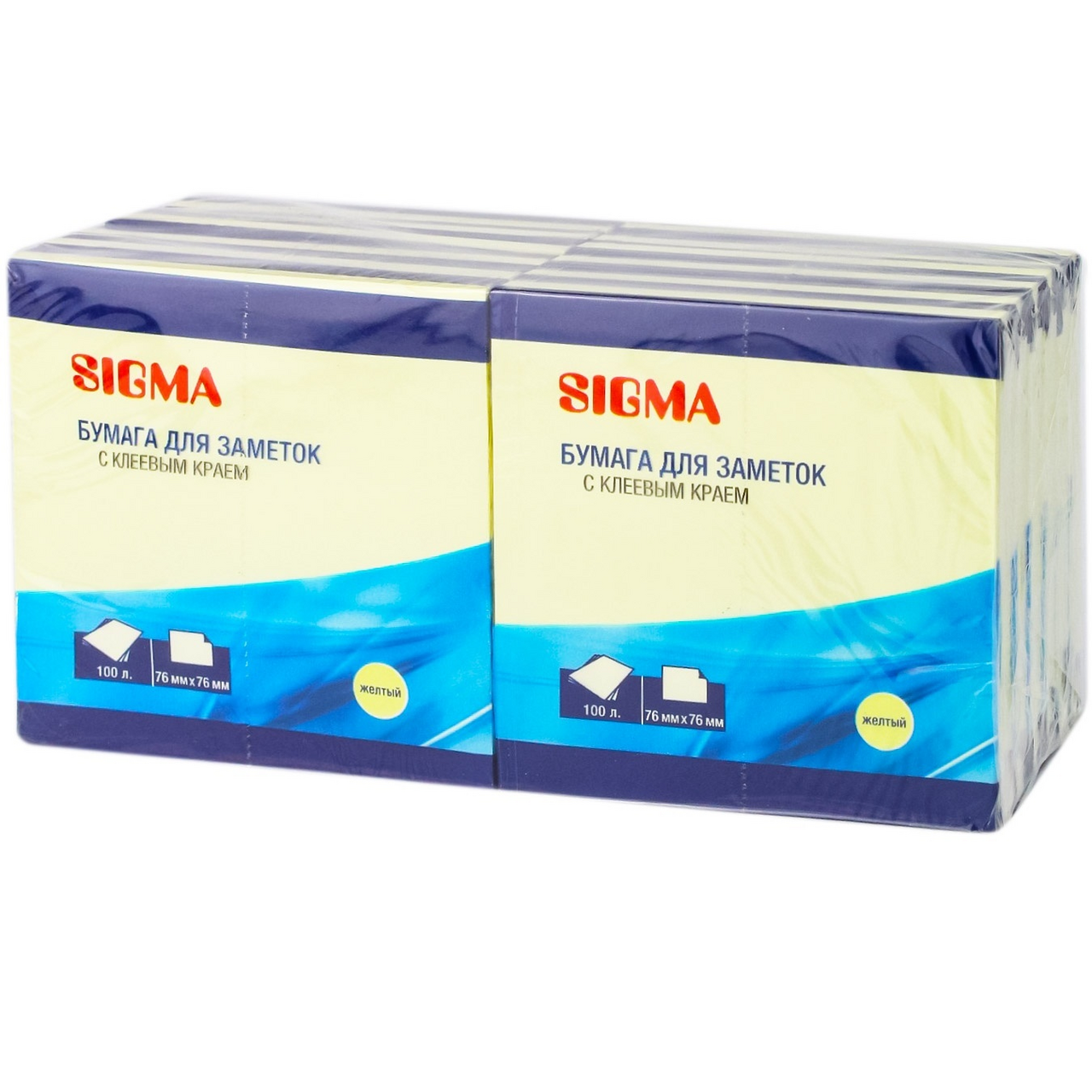 SIGMA Бумага для заметок с клеевым краем желтая 7.6 х 7.6см 100 листов, 12шт