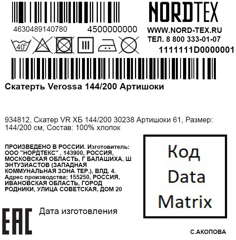 • Тип Скатерть