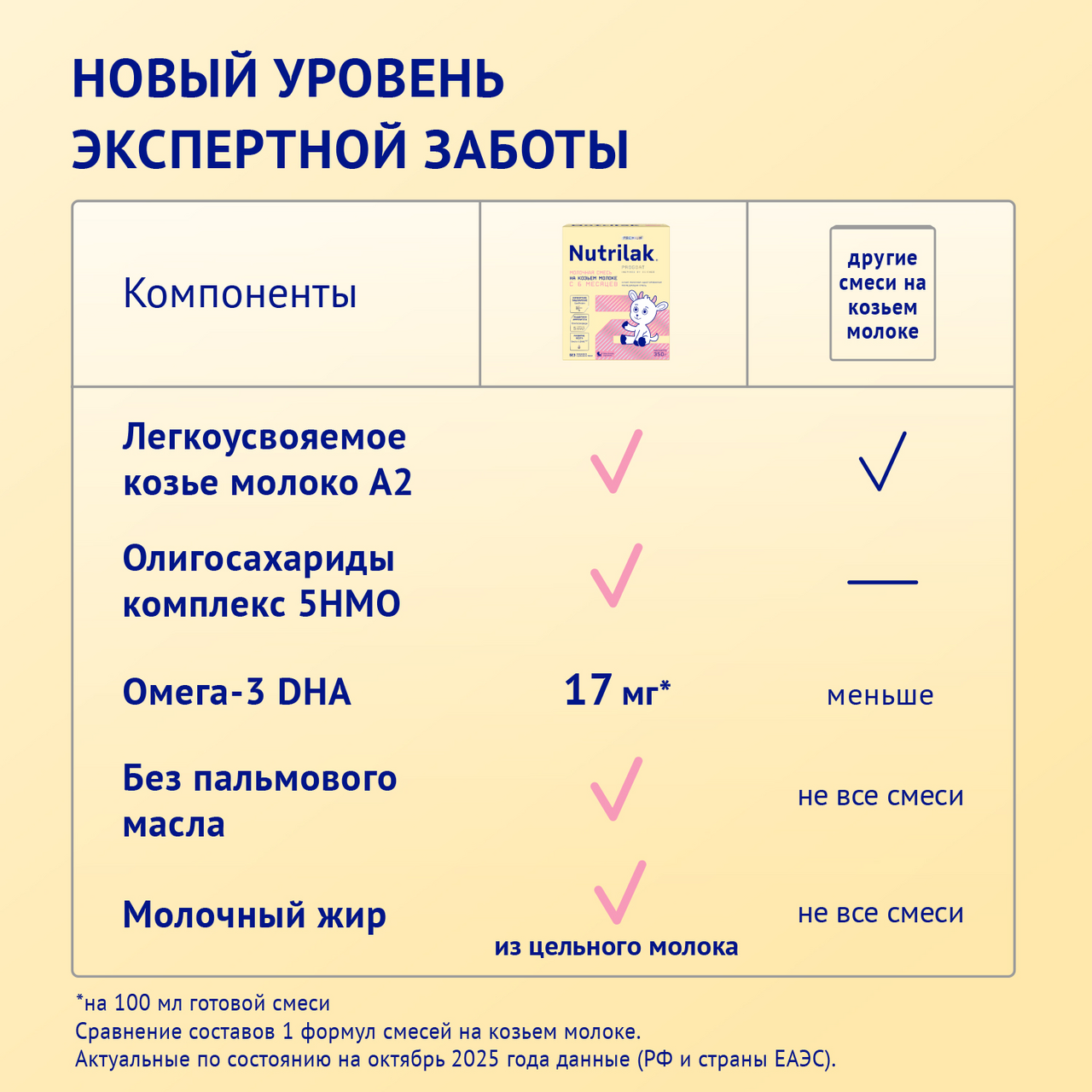 Смесь молочная сухая адаптированная последующая Nutrilak Premium 2 на основе козьего молока предназначена для смешанного и искусственного вскармливания детей с 6 месяцев.