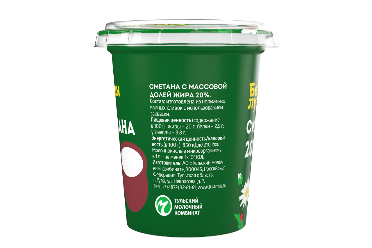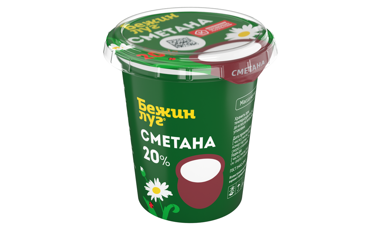 Сметана Бежин луг 20%, 300 г производится в России по традиционной технологии. Изготовлена на основе сливок и заквасочных микроорганизмов. Выделяется натуральным сливочным вкусом и бархатной текстурой. Сметана не расслаивается, густой консистенции. Не содержит в составе ГМО, консервантов, усилителей вкуса, красителей и стабилизаторов. Жирность составляет 20%. Добавлять сметану можно в горячие блюда, готовить на ее основе соусы или крема для выпечки, заправлять салаты, добавлять в творог. В составе содержится большое количество кальция, железа, фосфора и витаминов С, Е, А, группы В, которые необходимы для нормальной работы организма. При регулярном употреблении сметаны стабилизируется работа желудочно-кишечного тракта, укрепляется иммунитет, улучшается состояние кожи, выводятся токсины из организма. За счет большого содержания кальция укрепляются костные и мышечные ткани, ускоряется процесс восстановления после физических упражнений.