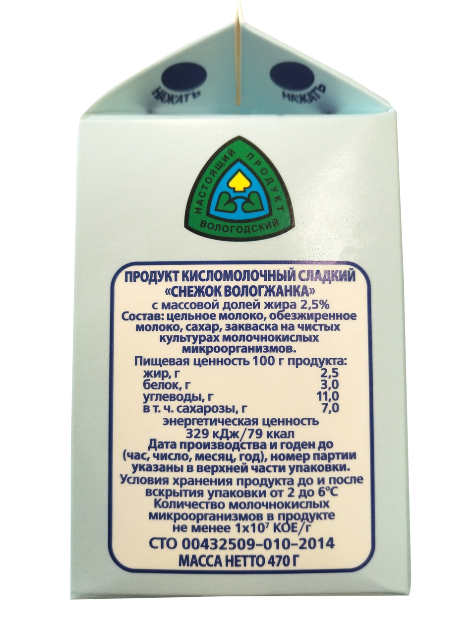Снежок Вологжанка 2.5%, 470г