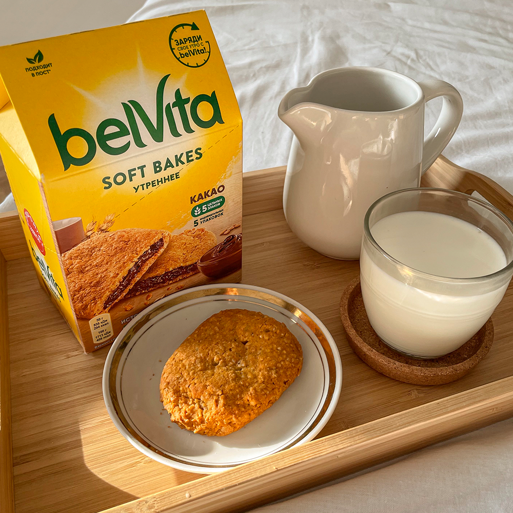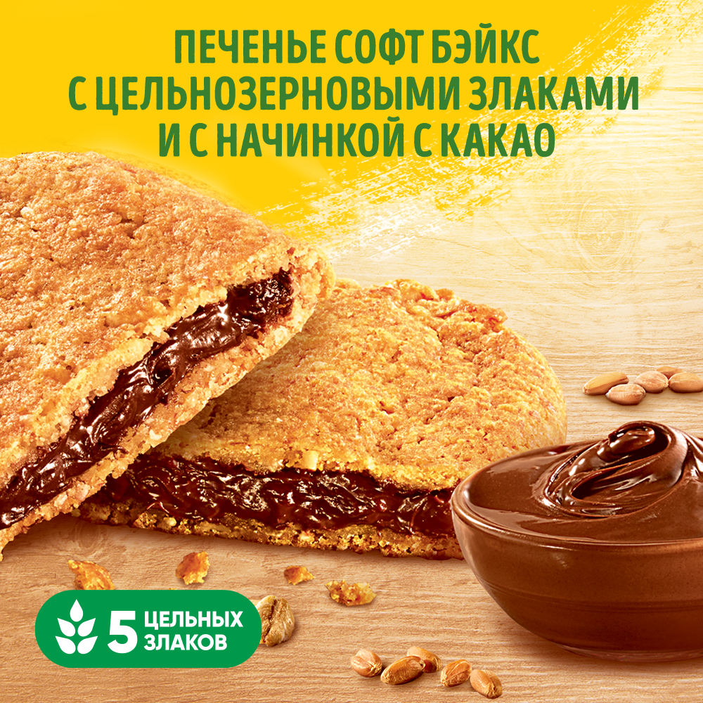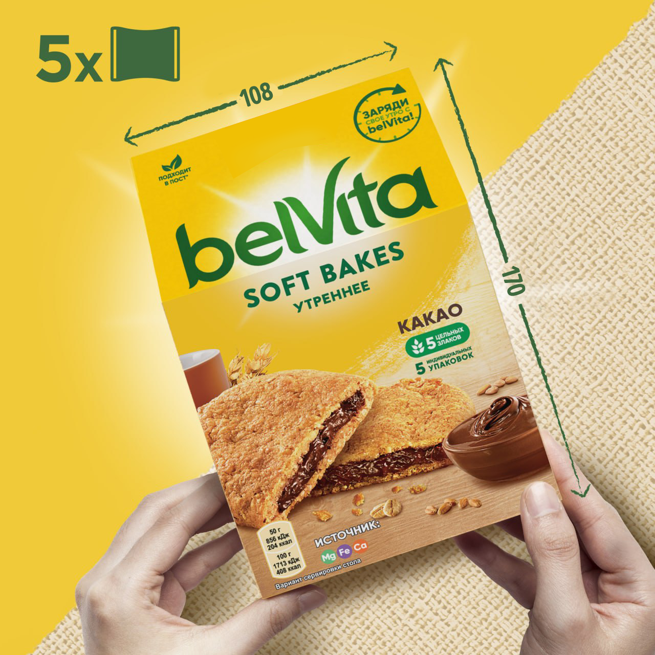 Печенье "belVita Утреннее" Софт Бэйкс с цельнозерновыми злаками и начинкой с какао - мягкое печенье с 5ю цельными злаками (овес, пшеница, греча, ячмень, полба) и нежной начинкой с какао. Источник магния, кальция и железа. Печенье злаковое - идеально для утра и делает завтрак еще вкуснее и питательнее, просто добавьте йогурт, творог, фрукт. Полезное печенье с начинкой belVita в составе сбалансированного перекуса – это то, что позволит зарядить бодростью и оптимизмом. Печенье с начинкой является альтернативой круассанам, пряникам, сладким крекерам, кексам и другой выпечке; отлично подходит к чаю и к кофе, вкусно с молоком, кефиром, ряженкой, соком, какао и другими напитками. Печенье в индивидуальной упаковке удобно взять с собой на работу или на прогулку, в поездку, на пикник или на дачу. Не содержит продуктов животного происхождения, поэтому подходит в пост.