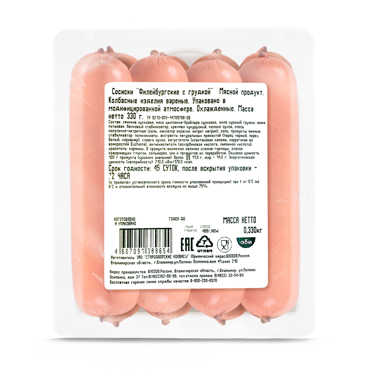Сосиски Баварушка филейбургские с грудкой, 330г