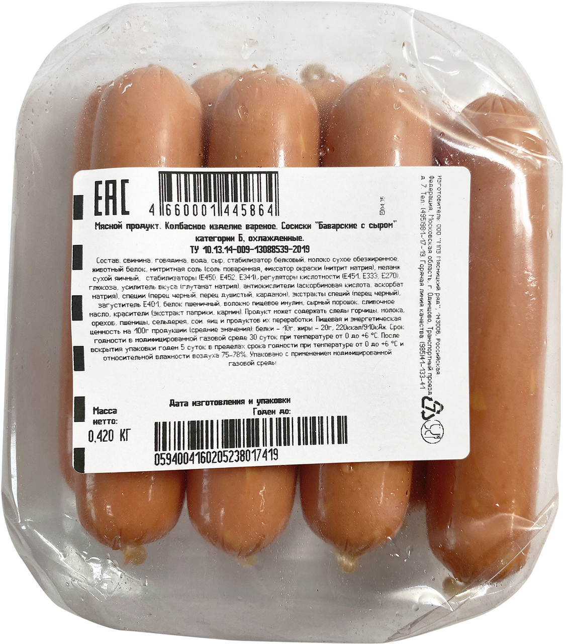 Сосиски Мясницкий ряд баварские с сыром вареные, 420г