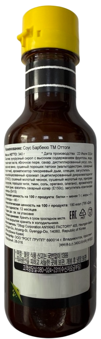 Кукурузный сироп с высоким содержанием фруктозы, вода, томатная паста, яблочное пюре, сахар, дистиллированный уксус, соль, красное вино, сушеный порошок патоки (мальтодекстрин, сахарный тростник), ароматизатор гикориевый дым, специи, загуститель модифицированный крахмал (ацетилированный дикрахмаладипат (Е1422)), сушеный молотый чеснок, сушеный молотый лук, приправа (кукуруза, порошок чили, тмин, соль, орегано, орегано), ароматизатор жидкий дым, краситель сахарный колер (Е150с), загуститель ксантановая камедь (Е415).